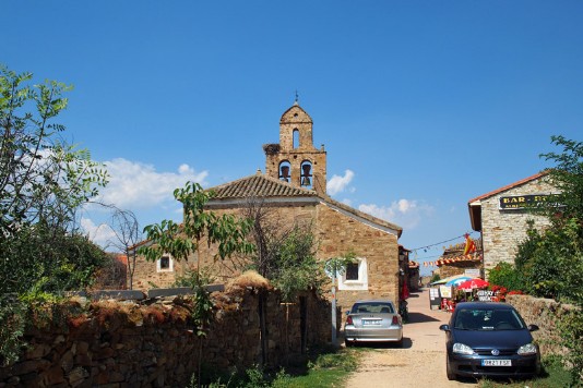 Wieder einmal gehe ich im Dunkeln los. Nach einigen Minuten komme ich an der originellen Herberge in Pieros vorbei. Hier herrscht auch schonreges Treiben. Die Herberge ist in einer Halbkreis in Zweierkabinen um die Kirche errichtet. Bereits vor 8.00 Uhr erreiche ich in Villafranca del Bierzo die Santiagokirche. Weiter an der Burg vorbei gehe ich ins Zentrum, wo mich wieder einmal Norbert und Aiobheann einholen. Nach einem Frühstück geht wieder jeder alleine seinen Weg. In Villafranca del Bierzo müsste ich eigentlich wegen seiner vielen kleinen und gro0en Kirchen länger bleiben. Leider reicht meine Zeit nicht. Im Tal des Rio Valcarce wird es wieder richtig heiß. In Portela ist die kleine Kirche Sankt Johhanes der Täufer offen. Außer mir sind doch noch zwei deutsche Pilger in der Kirche. Ich beschließe weiter bis Vega del Valcarce zu pilgern und den Aufstieg zum Cebreiro am nächsten Tagam ganz frühen Morgen zu starten. So beziehe ich in Vega de Valcarce in einem Casa Rural ein Zimmer, wo ich auch in der gegenüberliegenden Bar für 6 Euro ein wirklich gutes und ausreichendes Menü bekomme. Hier gib es einen Minimarket, wo ich für den nächsten Tag Vitamine und Getränke für den Aufstieg zum hl. Berg der Galicier einkaufen kann.